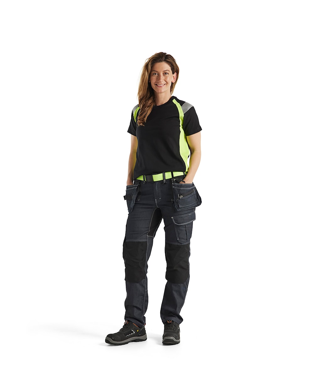 Durable craftsman’s trousers in women's fit made of CORDURA® denim stretch fabric and stretch panels at the crotch for optimal range of motion. For optimal fit the trouser has an elasticized waistband and tapered legs. Bottom-loading knee pocket in CORDURA® stretch fabric suitable for maximum comfort even when kneeling.