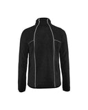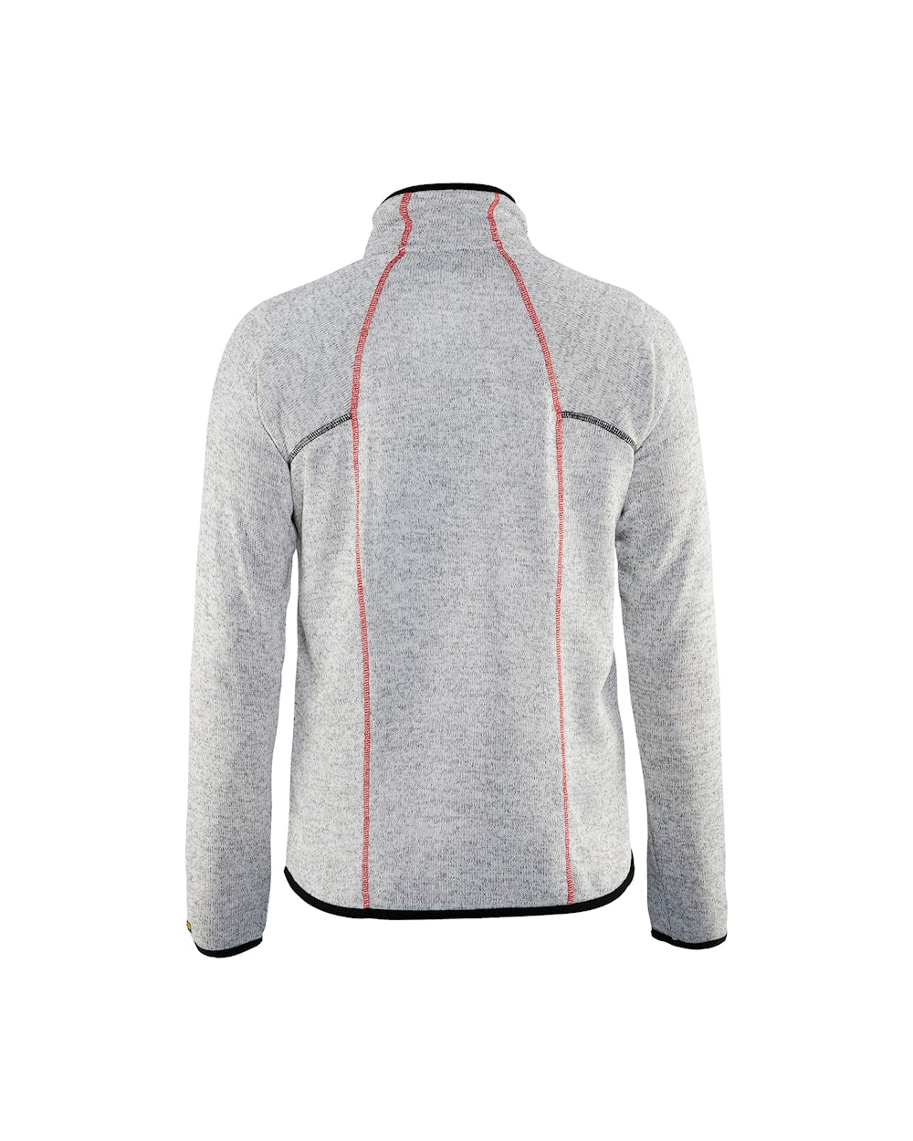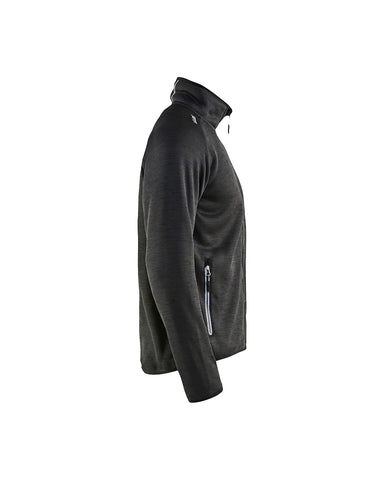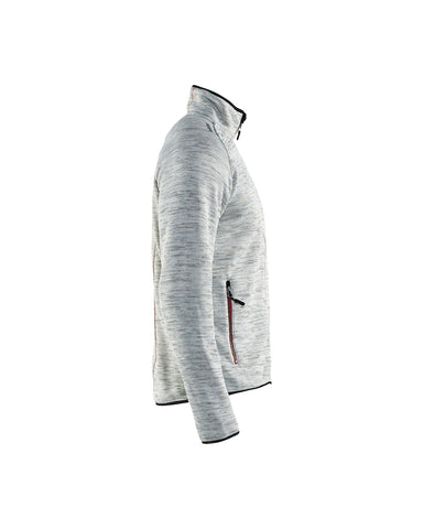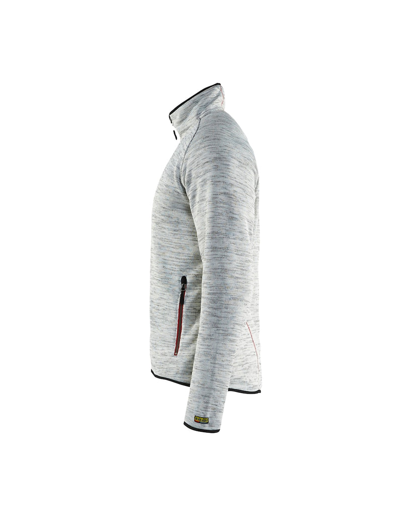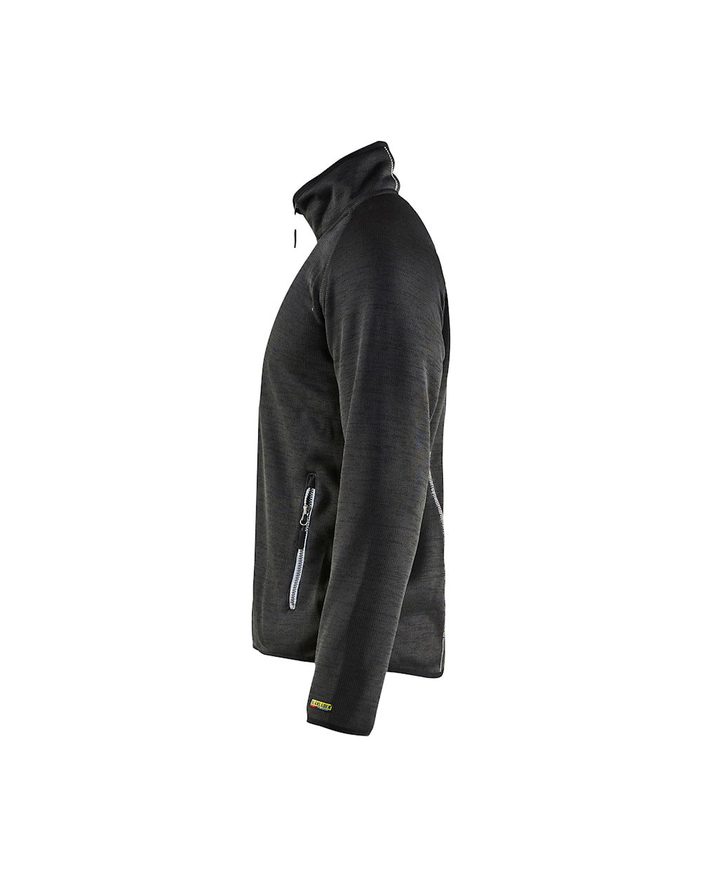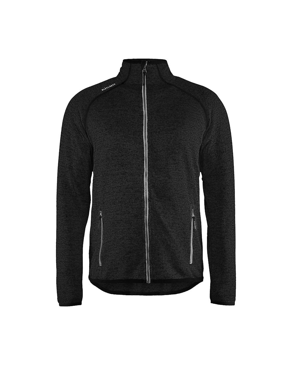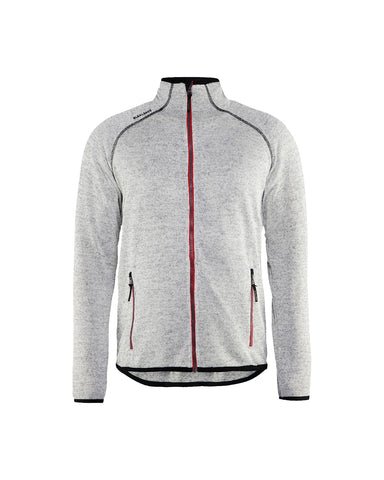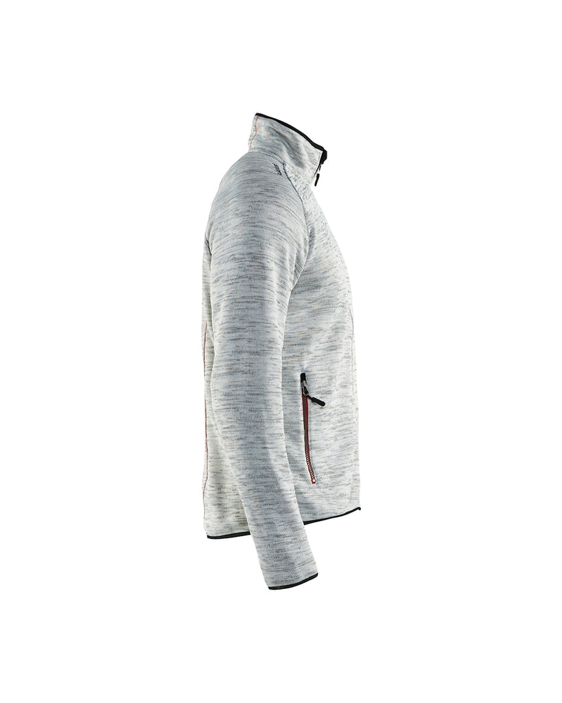 Comfortable knitted jacket with zippers in contrasting colour. The jacket has elastic edging at sleeve ends and hem, extended back and fleece lined collar. The front pockets have zippers.