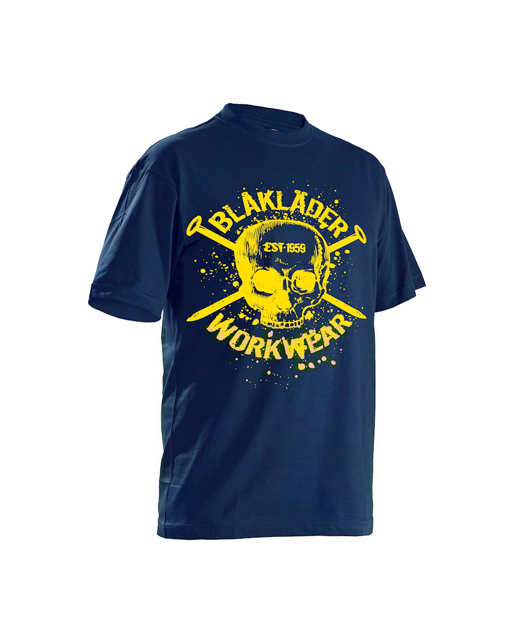 Whether you want to rep Blaklader on or off the jobsite, this navy, apparel t-shirt will do the trick. No bones about it.