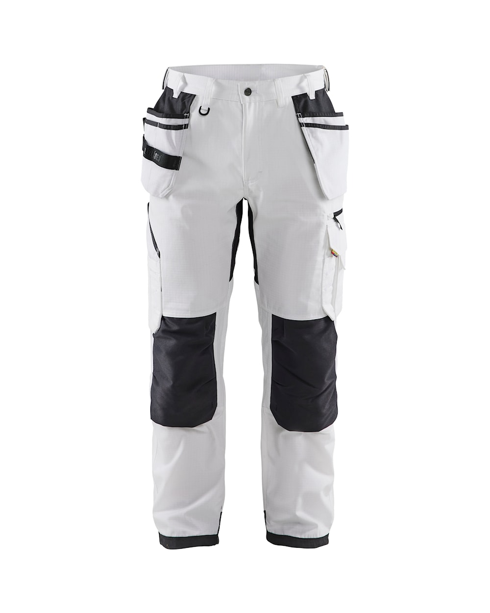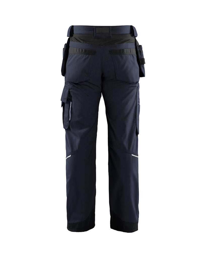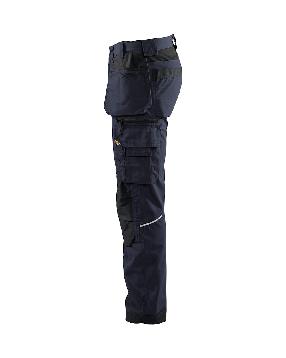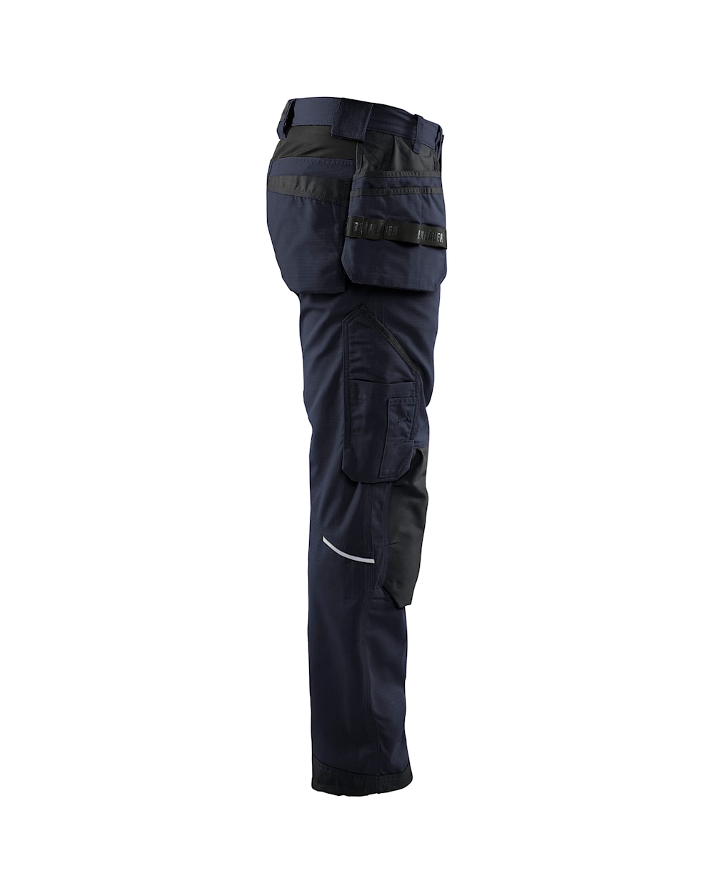 Cordura®-stretch reinforced kneepockets, CORDURA® reinforced side pocket for ruler tape, Reinforced ruler pocket, nail pockets, back pockets and back of leg end