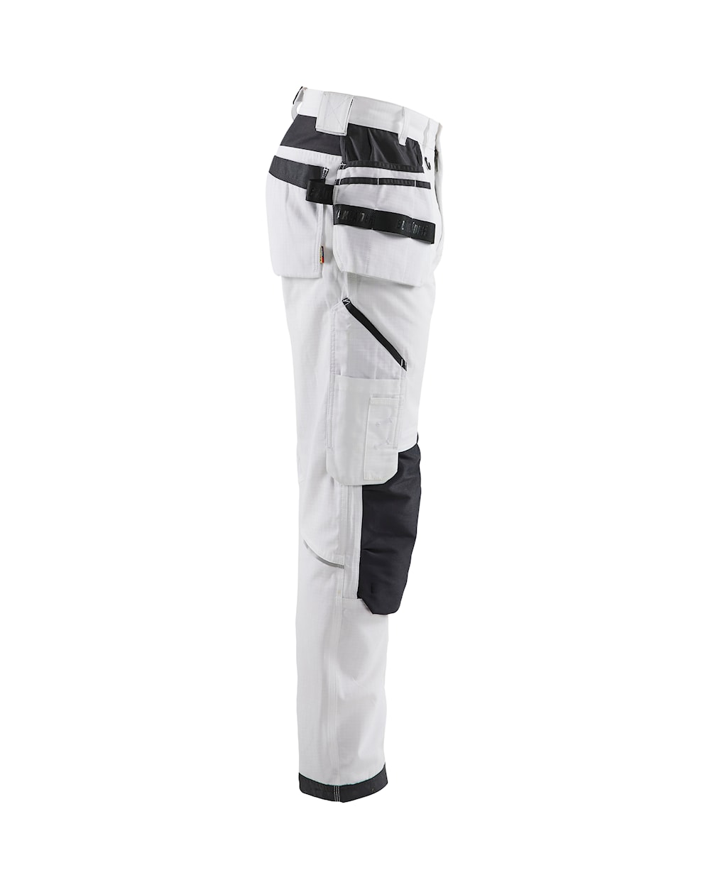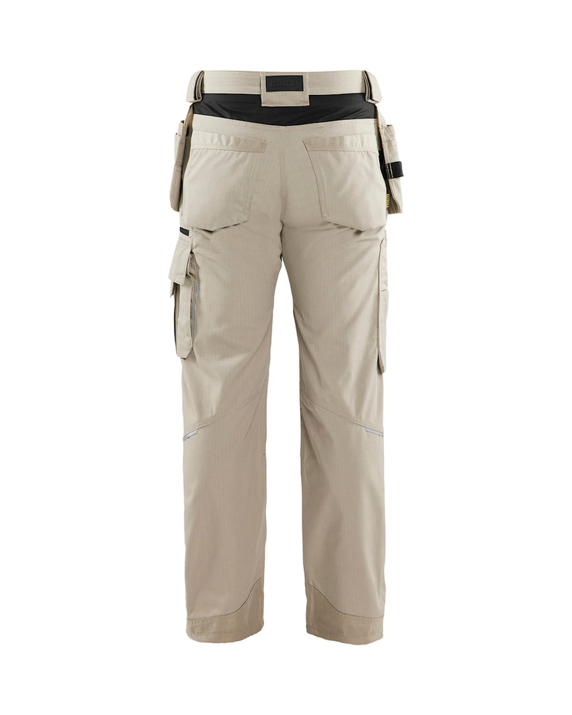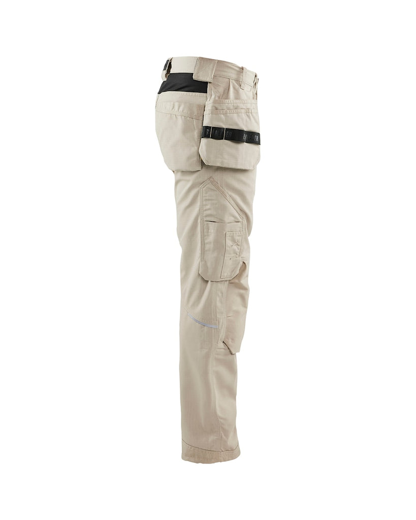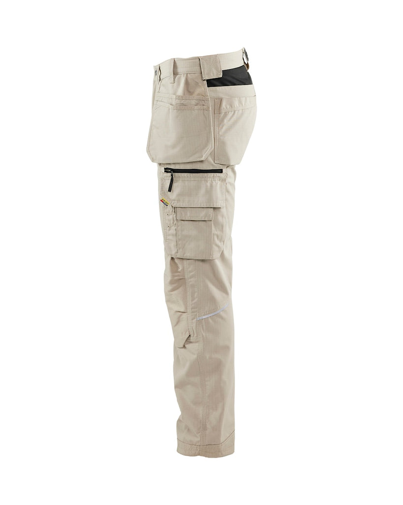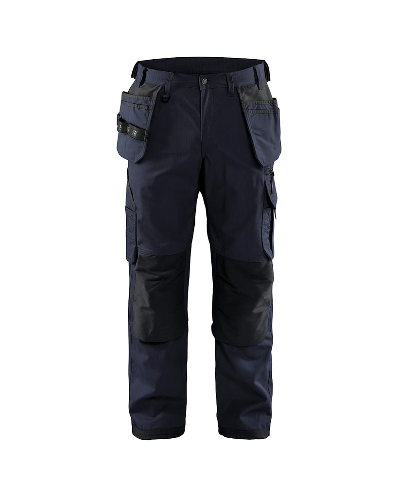 Cordura®-stretch reinforced kneepockets, CORDURA® reinforced side pocket for ruler tape, Reinforced ruler pocket, nail pockets, back pockets and back of leg end